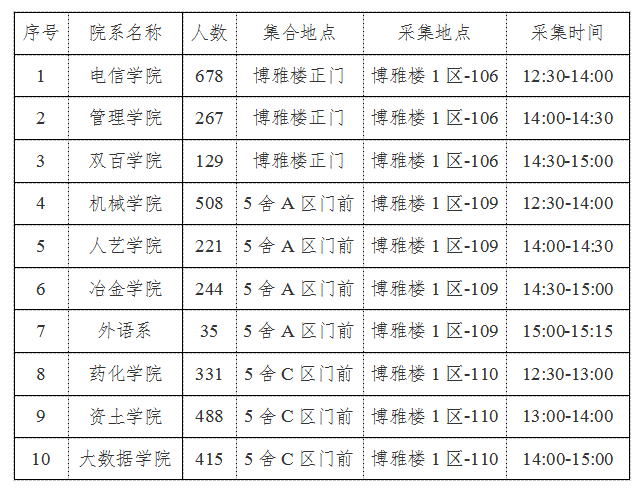 三、各院系具体图像信息采集时间安排