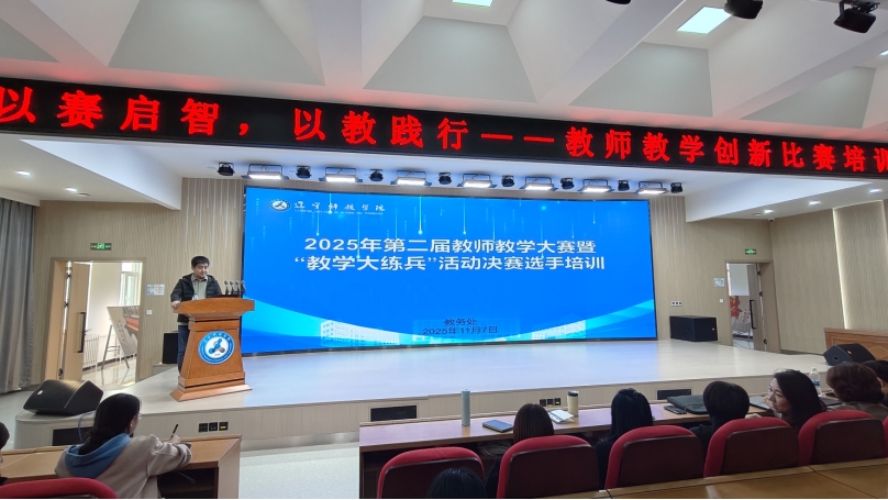 为提升教师教学能力与课堂质量,推动教学理念与方法创新,11月7日下午,学校教务处在数字化实训基地521会议室成功举办了2025年教师教学能力提升计划第十八期——“以赛启智,以教践行”暨2025年第二届教师教学大赛决赛选手培训。本次培训特邀沈阳师范大学王浩宇博士、2025全国教师教学创新大赛二等奖担任主讲嘉宾,围绕教学创新大赛的备赛策略、教学理念与实践经验展开深入分享。本次决赛选手、历年在辽宁省教师教学创新大赛获奖教师及各学院青年教师参加了此次培训。