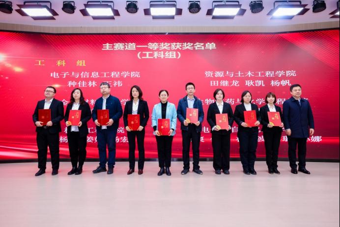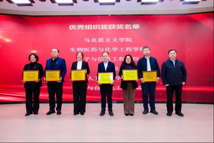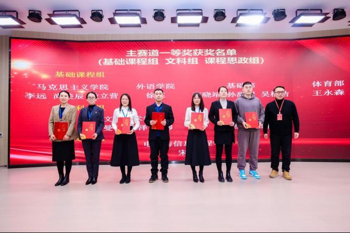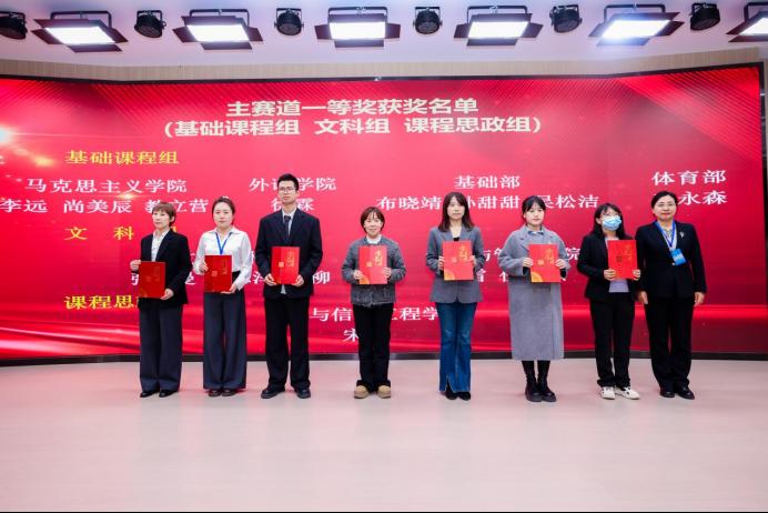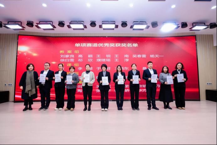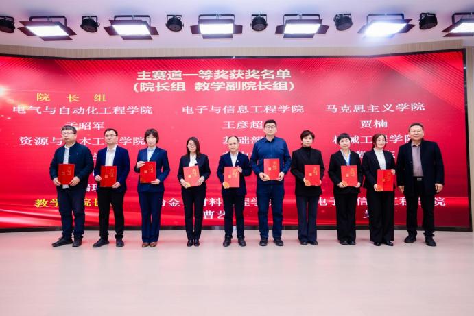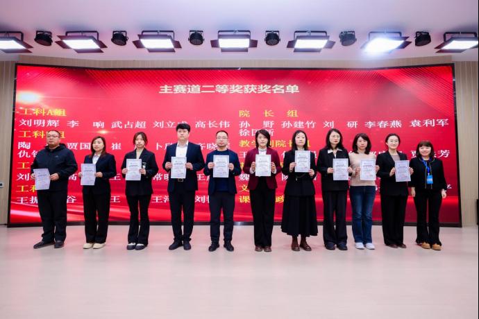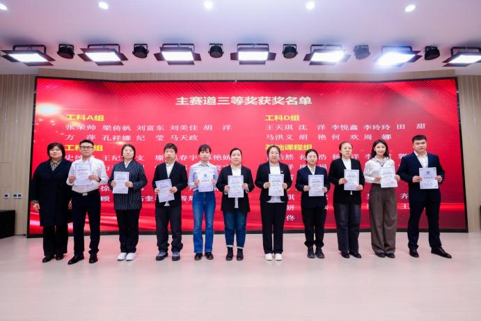 在答辩环节中,各位教师从容应对评委提问,展现出扎实的学科功底与敏锐的教学智慧。本次比赛共有240位教师积极响应号召参加比赛,其中参加主赛道预赛的教师人数为140人,主赛道一等奖的有40名教师,二等奖的有40名教师,三等奖的有60名教师;此外还有100位参加单项赛道获得单项赛道优秀奖的共有30名教师。在颁奖典礼上,教务处韩娇处长揭晓特等奖得主:人文艺术学院张小曼、马克思主义学院李远与尚美辰。获得优秀组织奖的单位是马克思主义学院、生物医药与化学工程学院、电子与信息工程学院、基础部、人文艺术学院、电气与自动化工程学院6个单位。