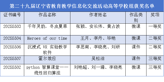 近日,辽宁省教育厅公布了第二十九届辽宁省教育教学信息化交流活动评选结果,我校有5件作品获得奖项,其中一等奖1项、二等奖2项、三等奖2项。